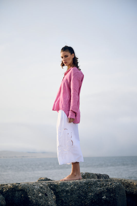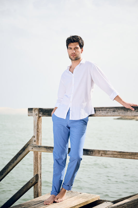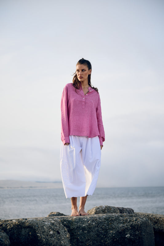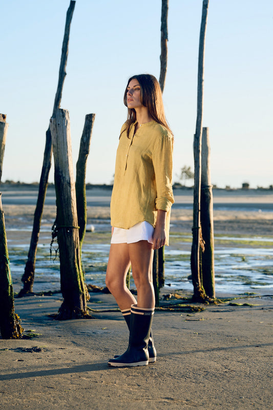 Côté femme ou côté homme, nos collections célèbrent l’amour du style et du vêtement, à mille lieues de la mode éphémère. Nous chinons des matières naturelles, et sommes toujours à la recherche des volumes, des détails et des couleurs qui feront notre différence. Nous fabriquons au gré des savoir-faire : les broderies et la soie en Inde, les chemises homme et femme au Maroc avec des popelines italiennes, les cachemires en Chine ou en Italie et tout le reste en Bulgarie avec des tissus italiens. Chaque saison, notre collection incarne avec audace et créativité une mode chic et joyeuse dans un esprit libre.