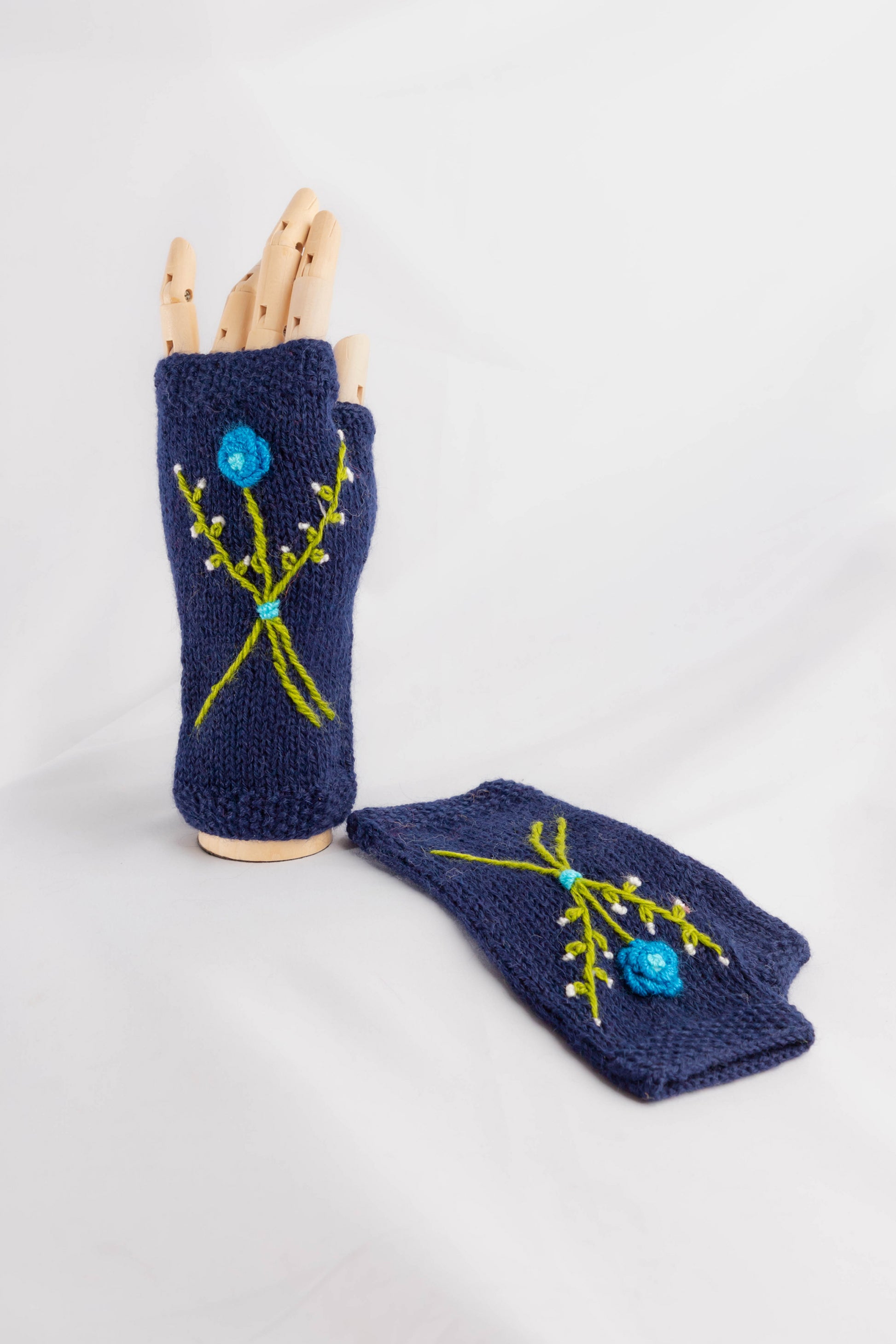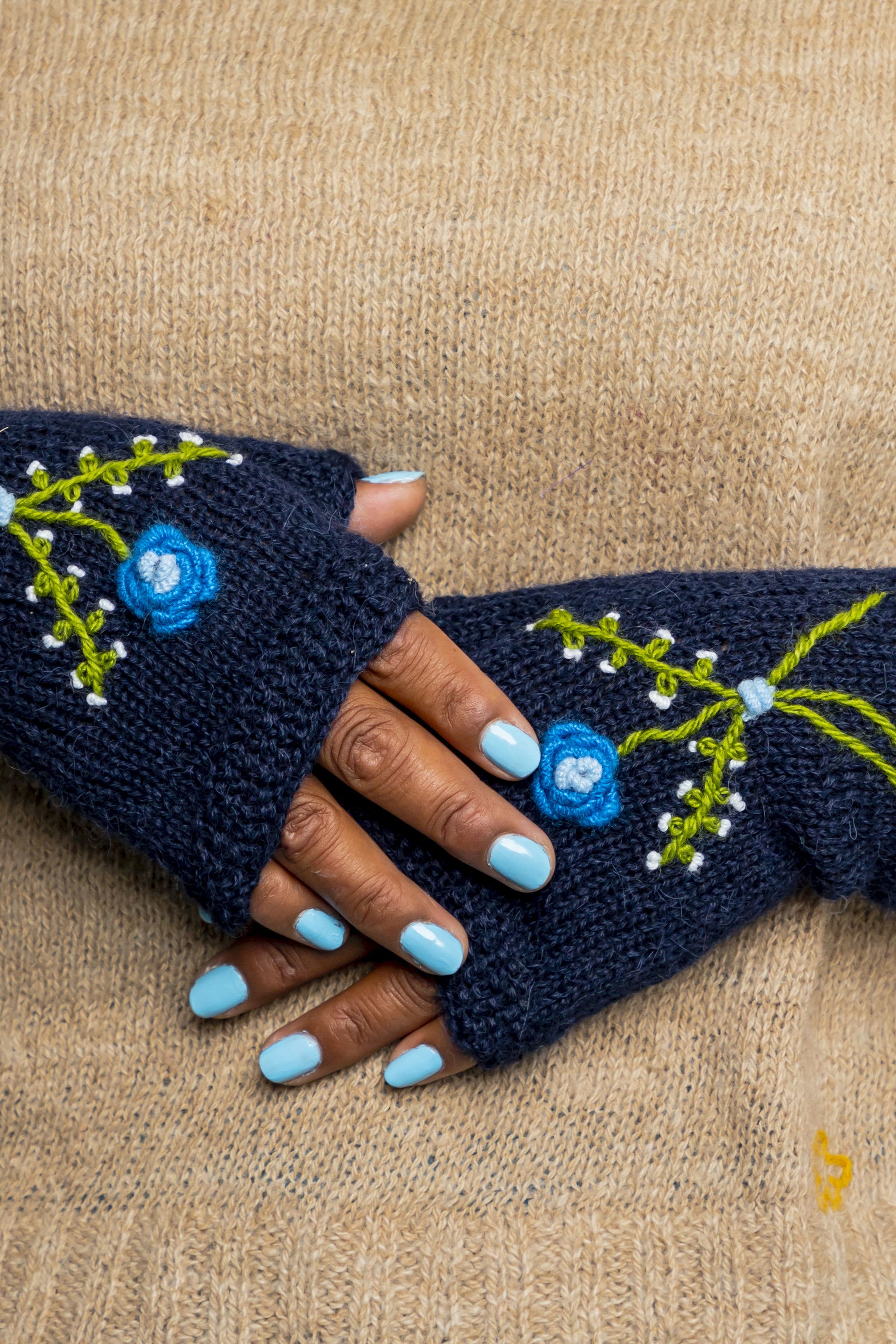 MITAINES BRODÉES EN ALPAGA MARINE