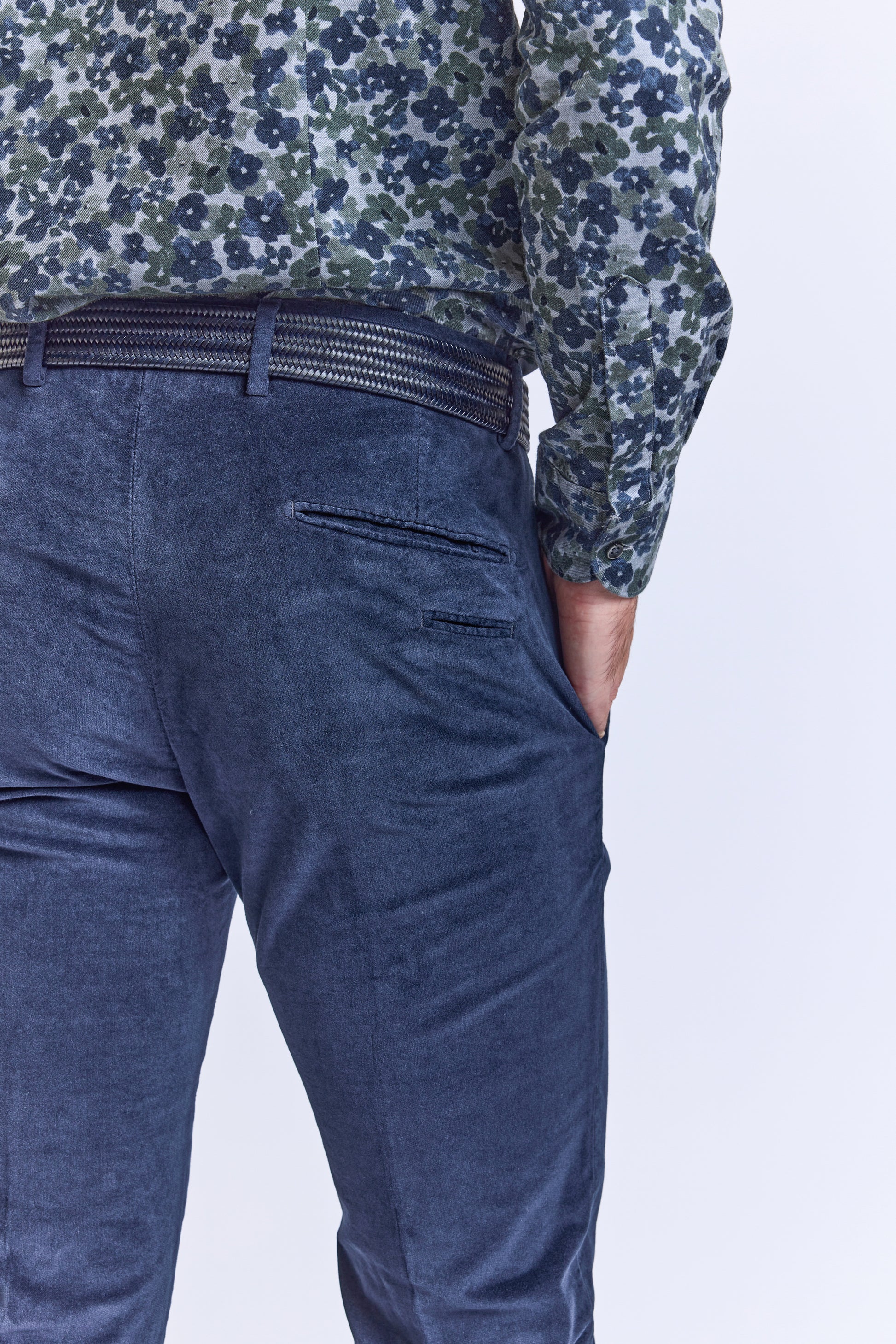 On adore le look et les jolies couleurs de ce pantalon en velours lisse. Deux poches biais, une poche ticket. Deux poches passepoilées avec bouton. Boutonnière deux boutons zip. Il a une coupe slim fit. Mathieu mesure 1m84 et porte une taille 48.