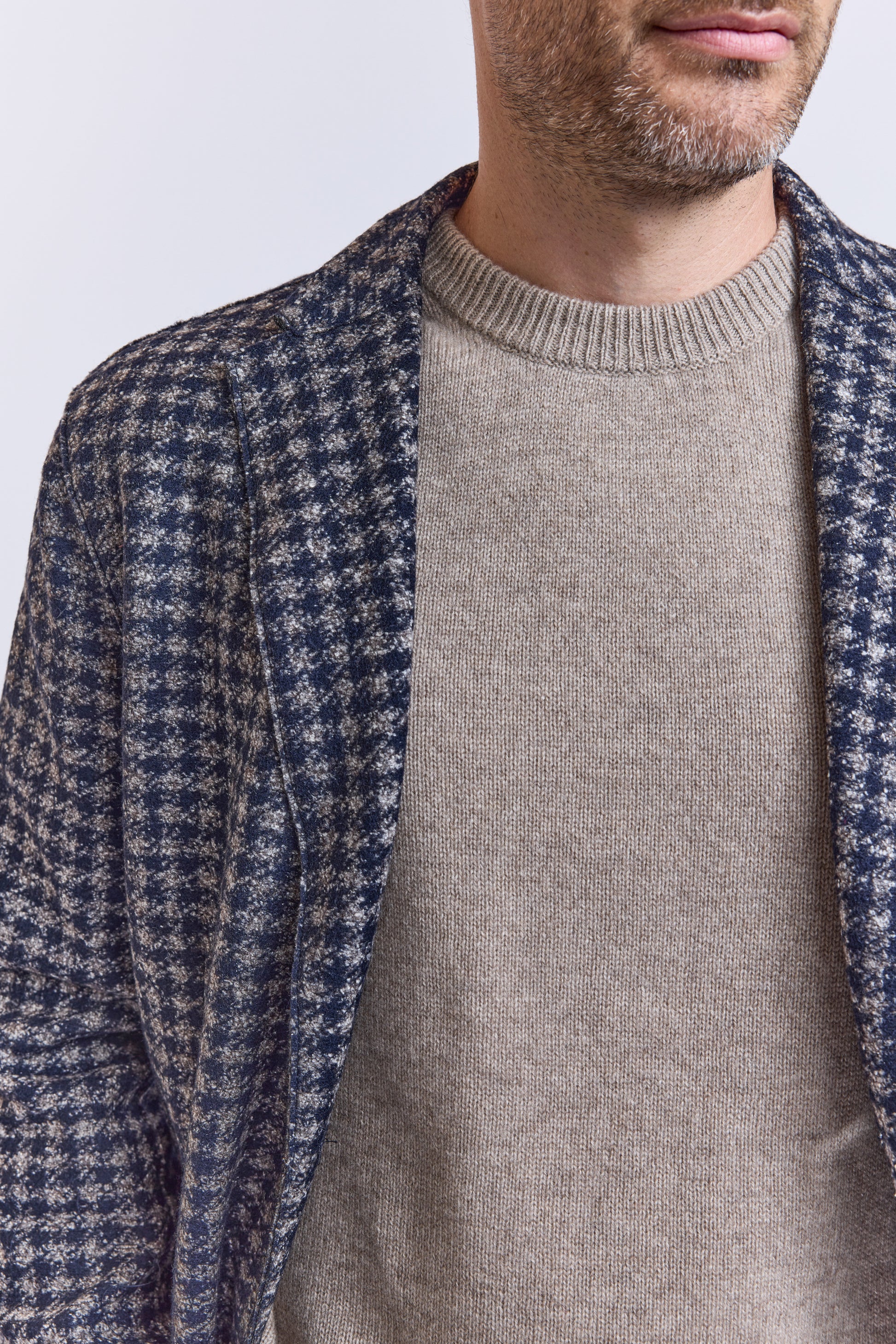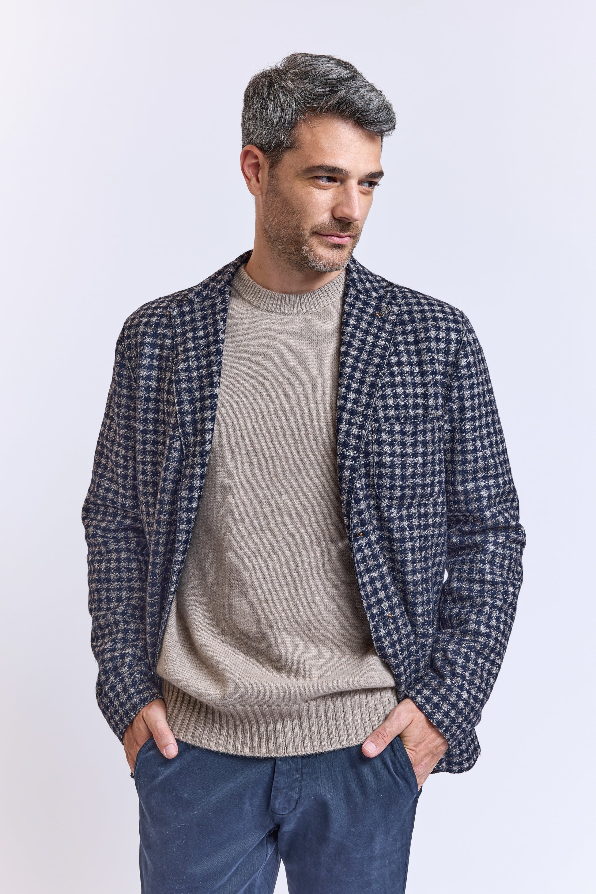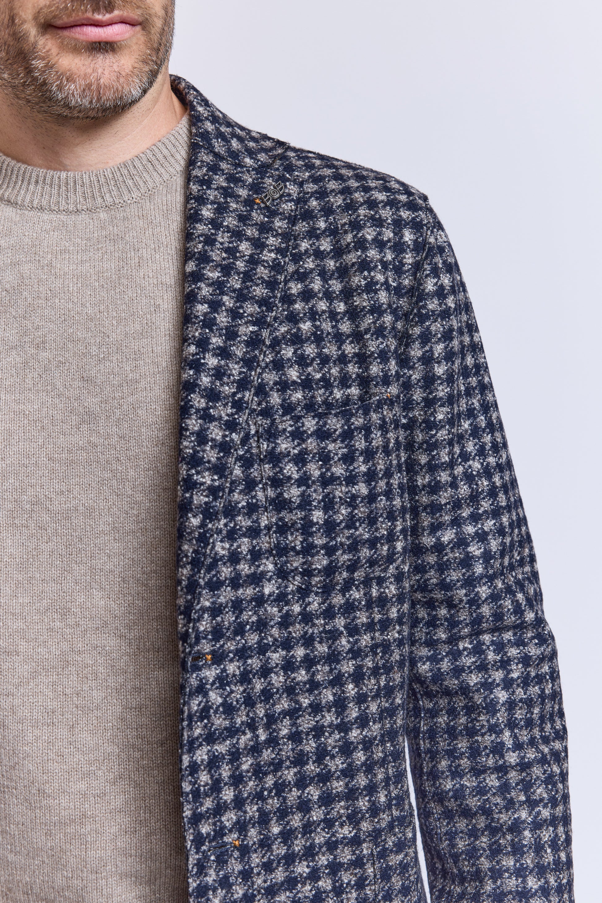 Comme d'habitude chez Bob, on craque pour des pièces originales et accessibles comme cette veste en maille pieds de coqs qui est idéale. Veste cintrée non doublée ultra souple. Poches plaquées. Fente à l'arrière. Made in Italie.
