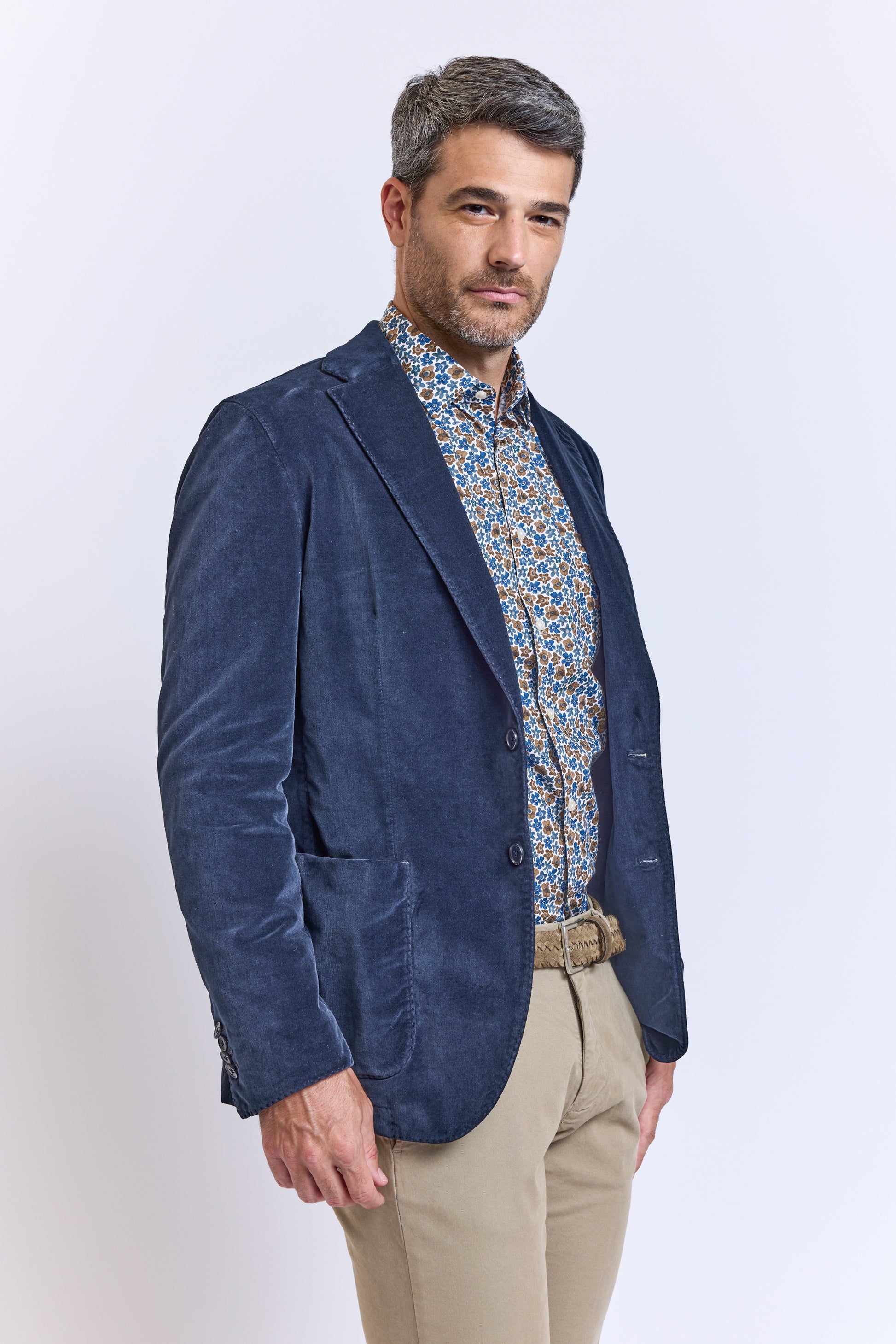 On a craqué pour la douceur du toucher de cette veste en moleskine. Celle-ci a une coupe ajustée avec deux fentes d’aisance à l’arrière, deux poches plaquées, une poche poitrine et une vraie boutonnière au poignet. 2 poches intérieures. Mathieu mesure 1m84 et porte une taille 50.