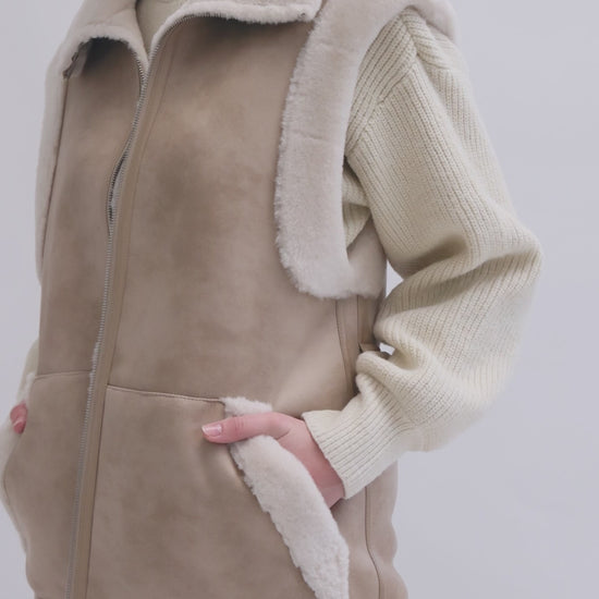 On the faux fur side, it warms and envelops. On the suede-effect side, it shapes and structures the silhouette.