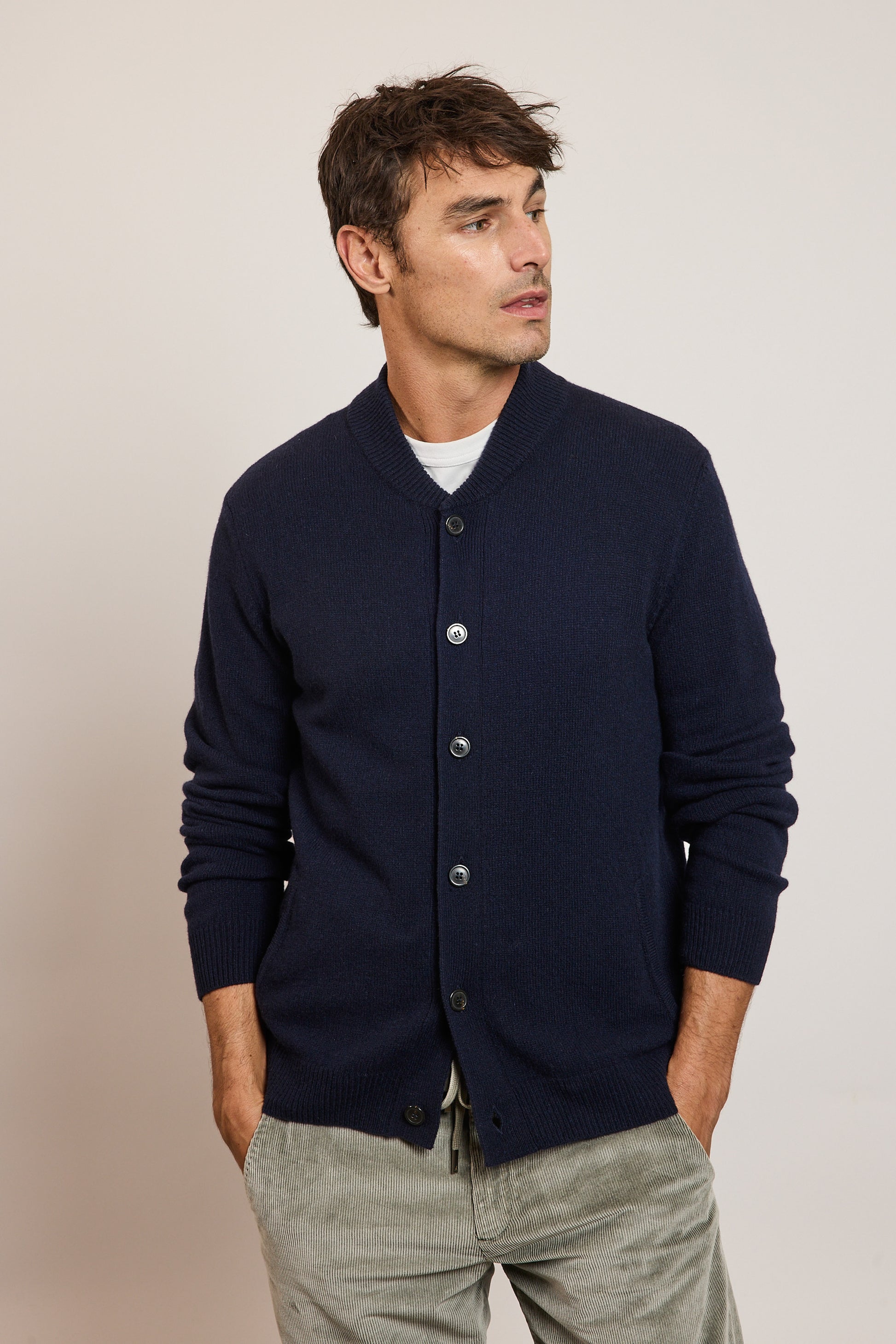 RECYCLED CASHMERE CARDIGAN NAVY