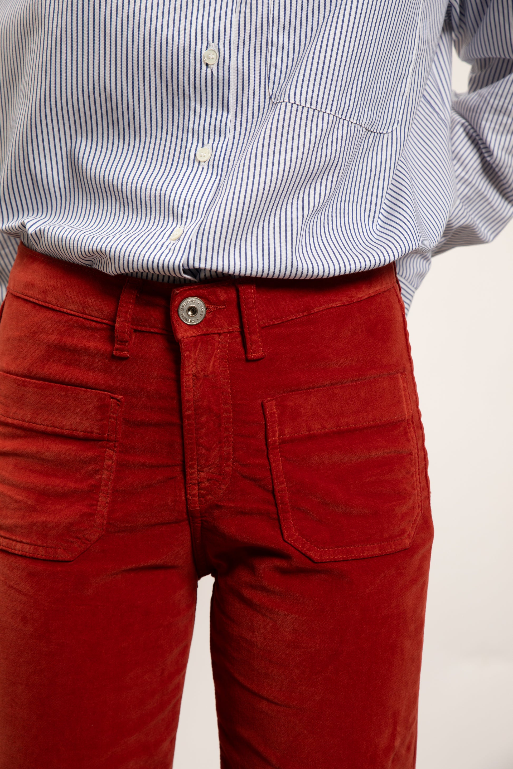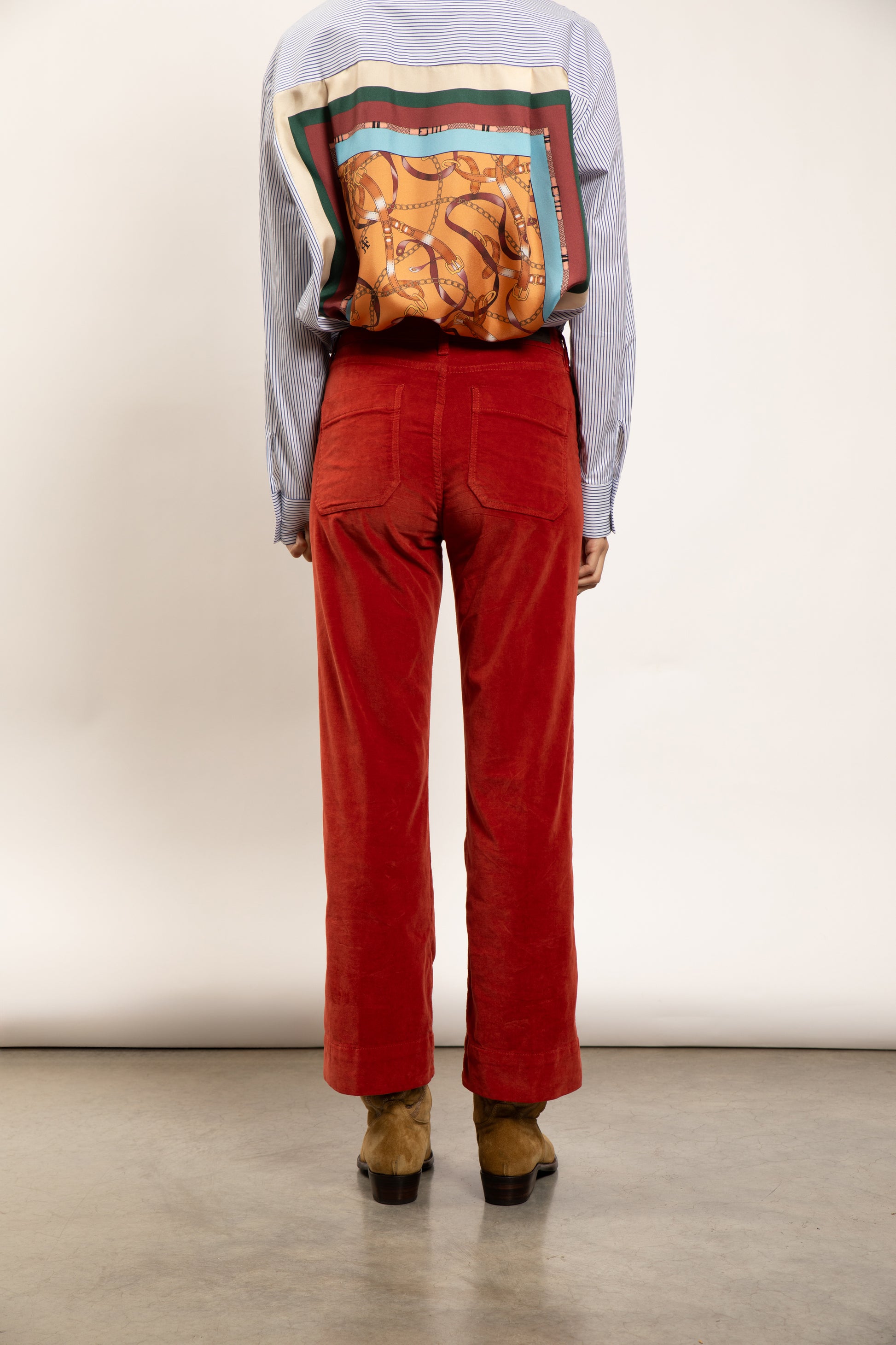 JEAN EN VELOURS LISSE ÉVASÉ ROUILLE