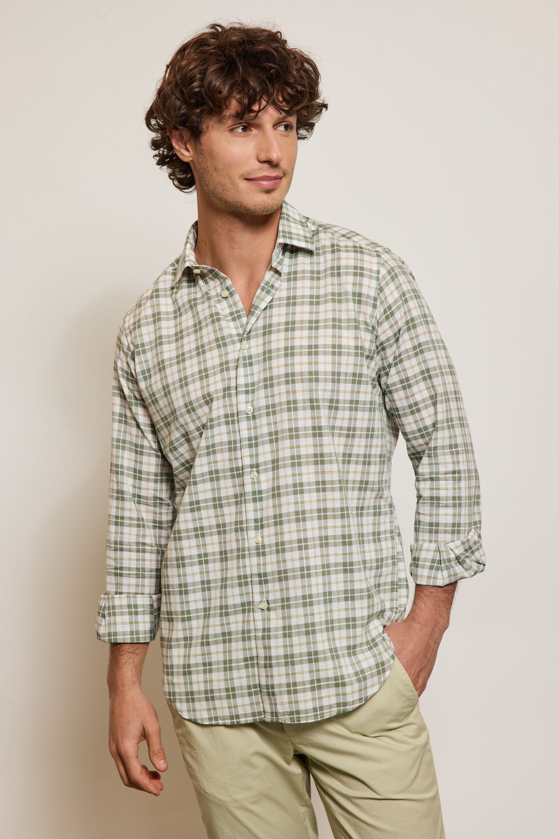 CHEMISE AJUSTÉE TARTAN KAKI