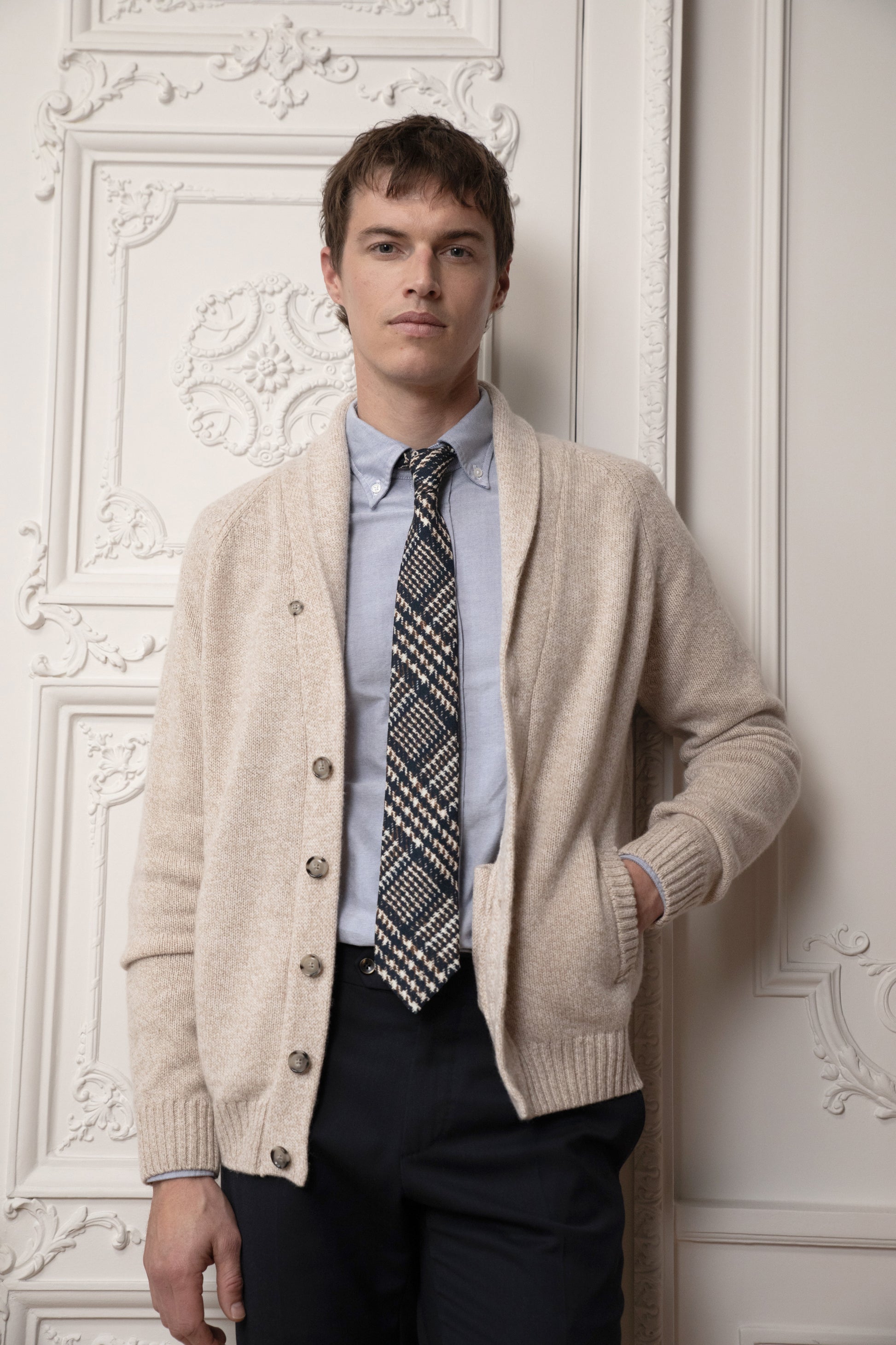 À nouer avec une chemise claire, un cardigan douillet ou une veste bien coupée, elle apporte ce supplément d’allure.