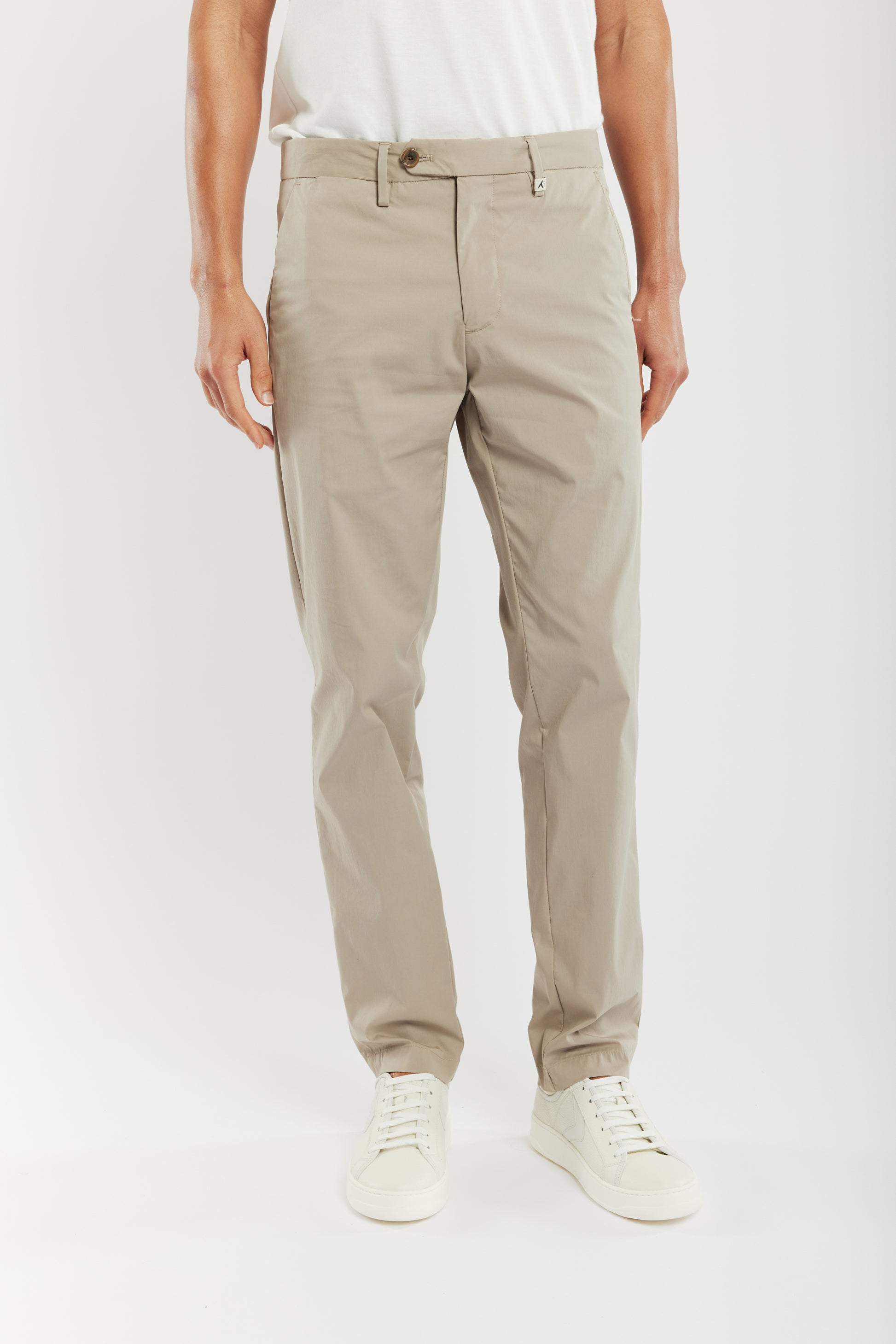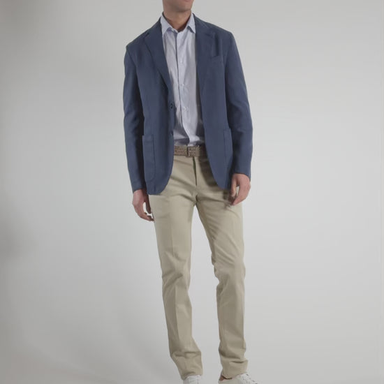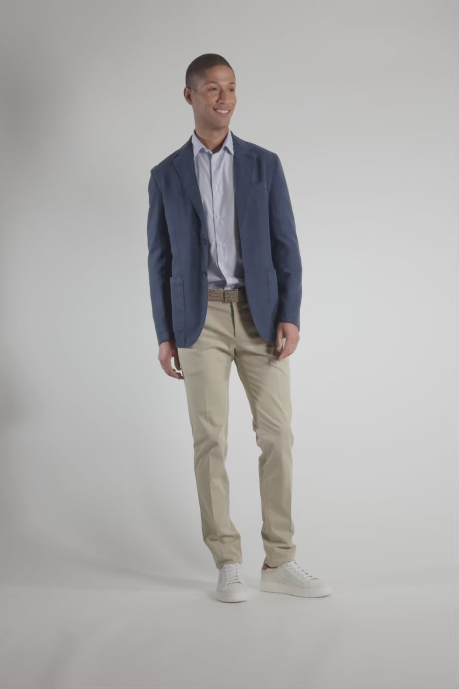 C'est le pantalon le plus léger de la collection ! En plus de sa légèreté, son stretch et sa douceur le rendent hyper confortable. Avec sa coupe fitée c'est le pantalon idéal à la ville mais aussi pour le voyage. 3 points de fermeture ceinture, 6 passants de ceinture, 2 poches biais avant et 2 poches boutonnées passepoilées à l'arrière. Fabriqué en Italie bien évidemment