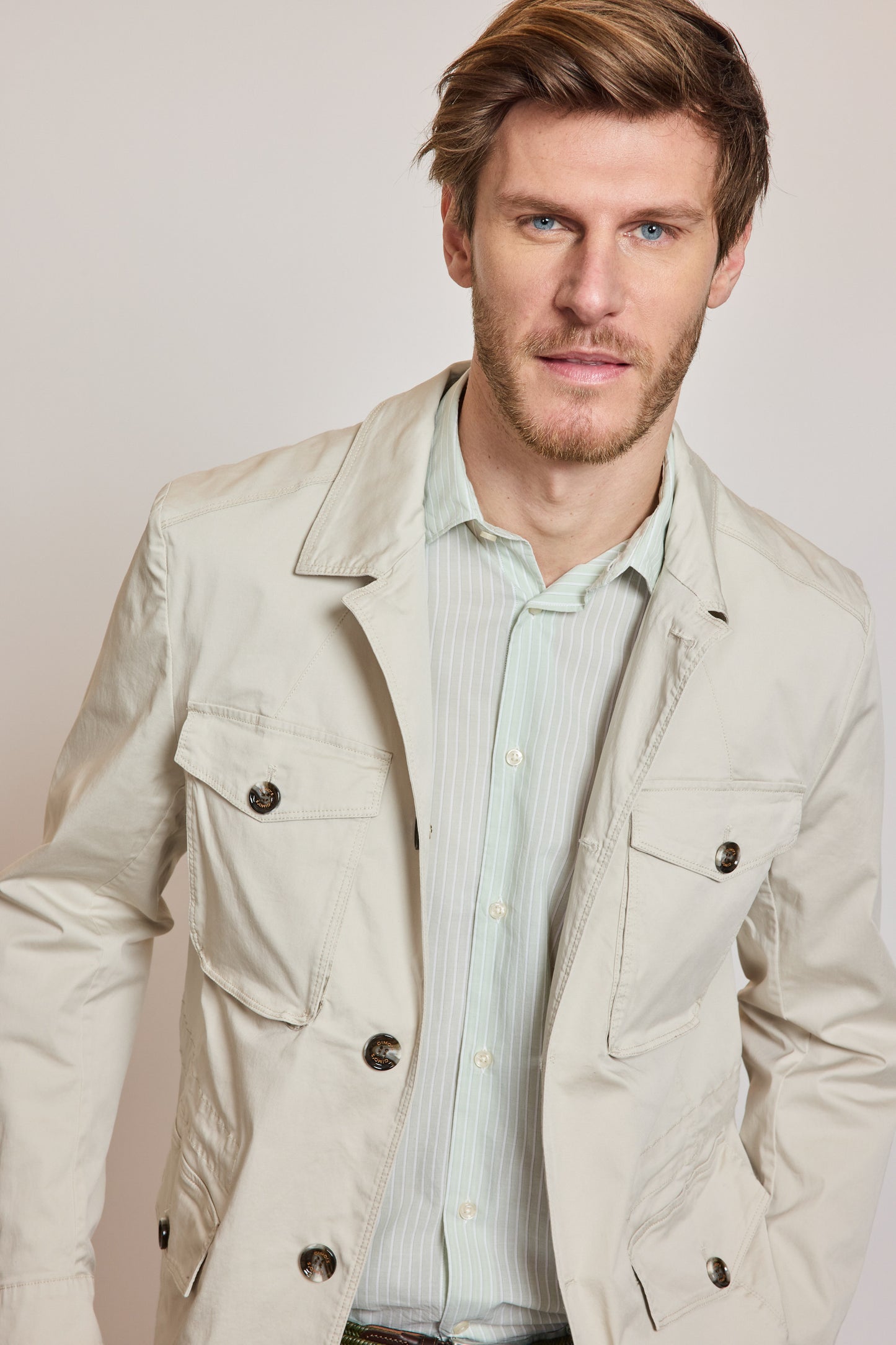 C'est sans aucun doute l'indispensable du vestiaire masculin : la veste saharienne ! Une allure impeccable, une matière déperlante, et ce je-ne-sais-quoi de chic décontracté qui fait toute la différence.